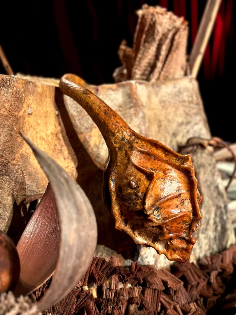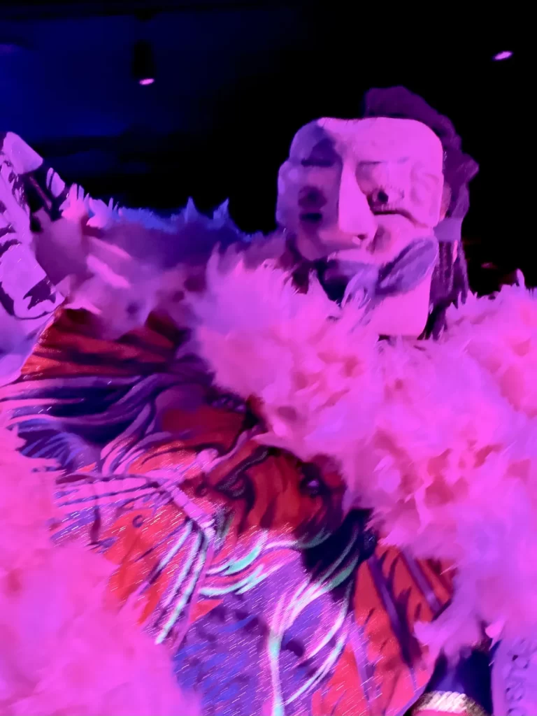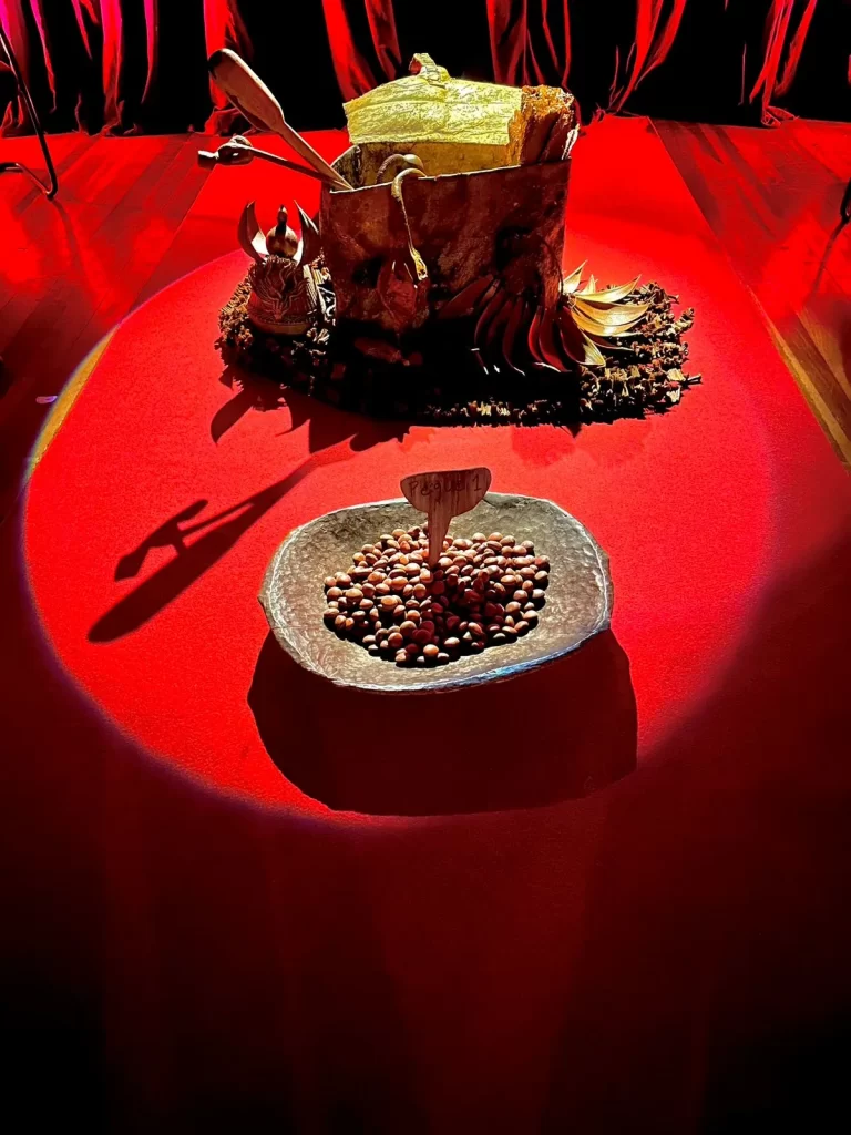 Cada tecido, cada objeto, cada escolha visual carrega significados: são elementos que ampliam a dramaturgia e convidam o público a mergulhar na experiência sensorial e simbólica proposta pelo espetáculo.