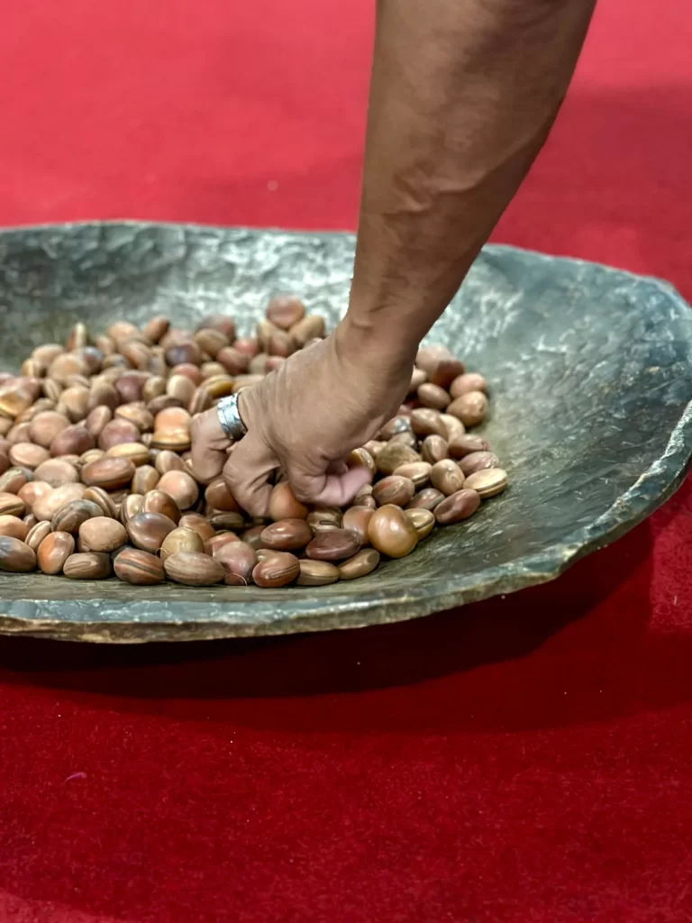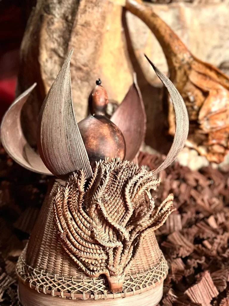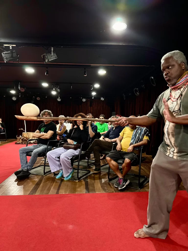 Monica Carvalho, artista plástica com alma de artesã que transforma insumos da natureza em obras de arte, é parceira criativa de Nello neste projeto. Com sensibilidade e apuro estético, contribui para a criação de um cenário que não apenas ambienta a cena, mas a transforma. O espaço do palco torna-se simbólico — ao mesmo tempo ritualístico e político.