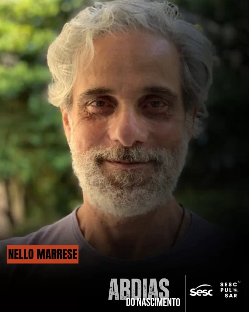 Nello Marrese é figurinista, cenógrafo e ator, com ampla atuação no teatro brasileiro. Ao longo da carreira, colaborou com montagens marcantes que se destacam pela estética precisa e narrativa. Seu trabalho na peça traduz, em forma e textura, os atravessamentos históricos que o espetáculo traz à tona.